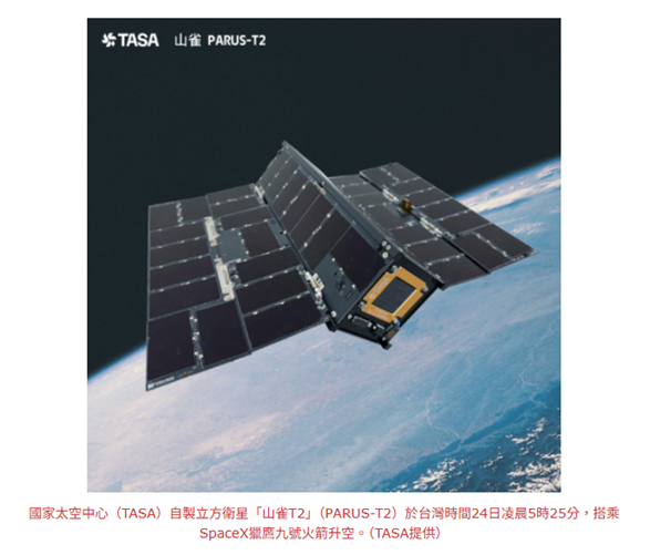 TASA自製立方衛星山雀T2 乘SpaceX火箭升空
