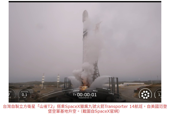 【大紀元2025年06月24日訊】(大紀元記者侯駿霖台灣台北報導)國家太空中心(TASA)自製立方衛星「山雀T2」(PARUS-T2)於台灣時間24日凌晨5時25分,搭乘SpaceX獵鷹九號火箭Transporter 14航班,自美國范登堡空軍基地升空,可作為產學研究的標準立方衛星本體平台,提升台灣在國際太空領域的競爭力。