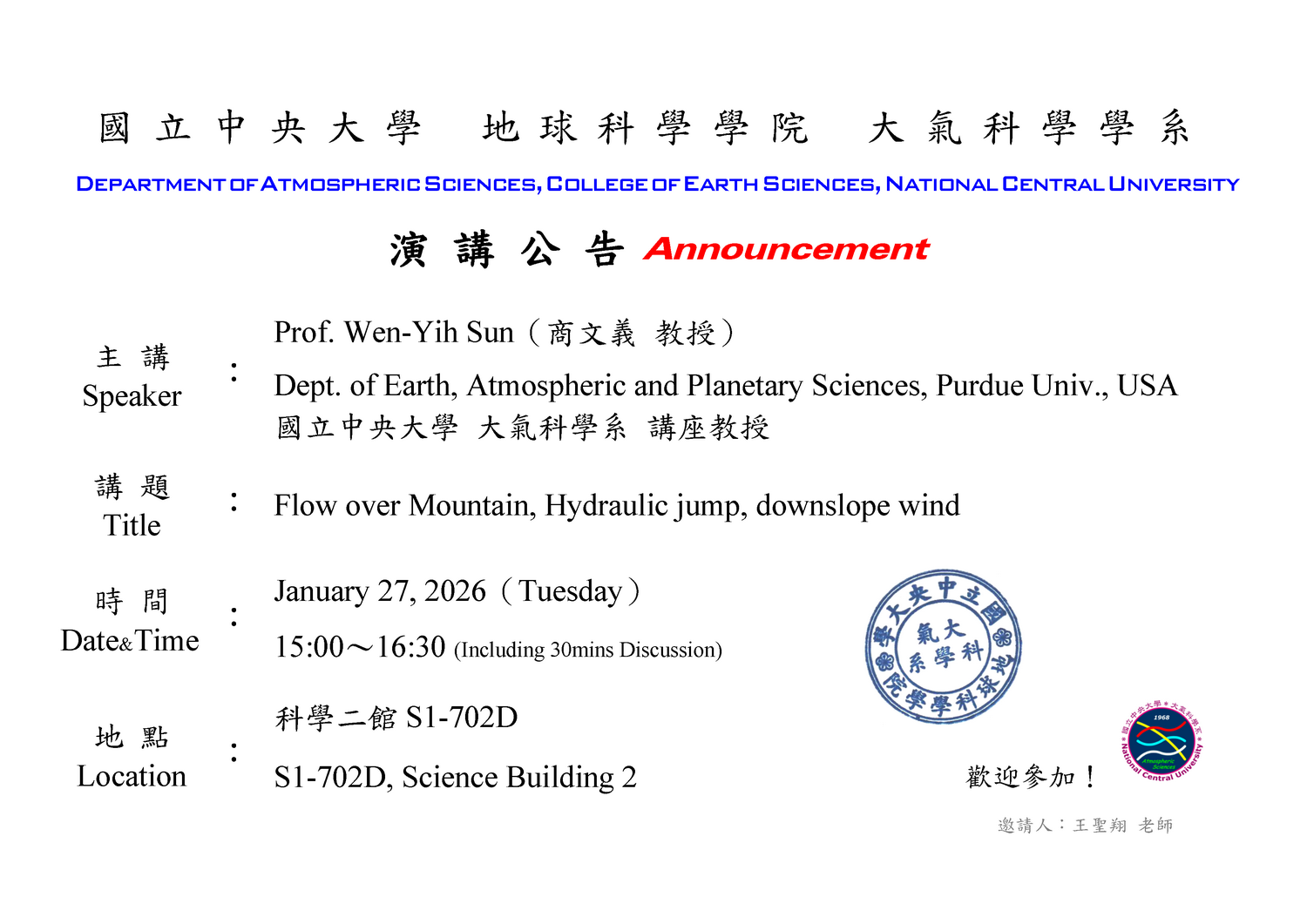 [教師徵聘訊息]國立臺灣師範大學地球科學系 徵聘助理教授以上(含)專任教師一名
