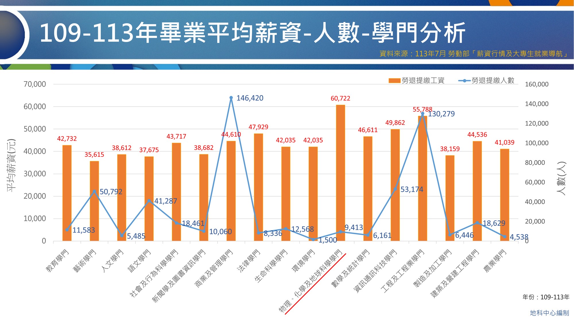104-113全國地科相關系所教授人員(含男女比)增減趨勢分析